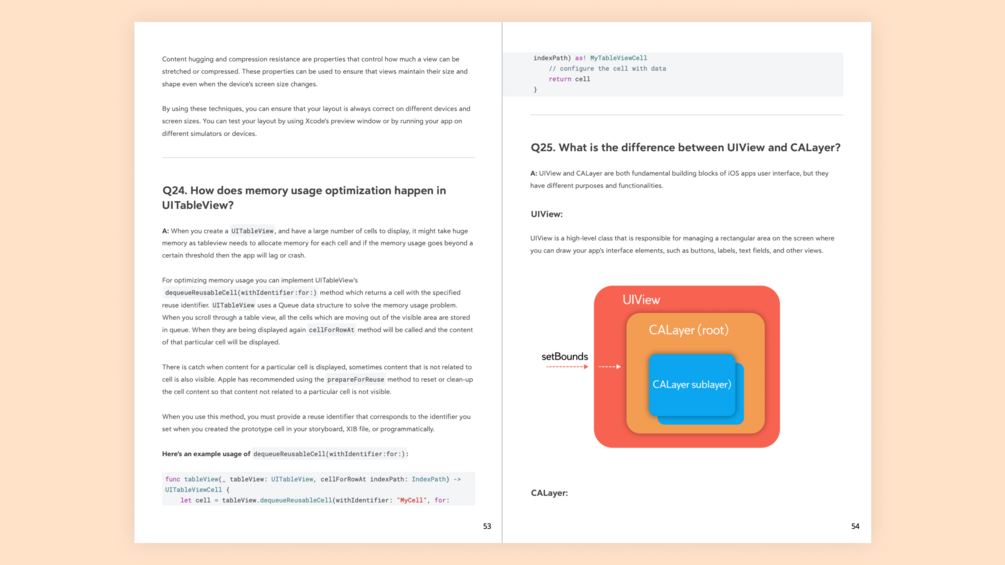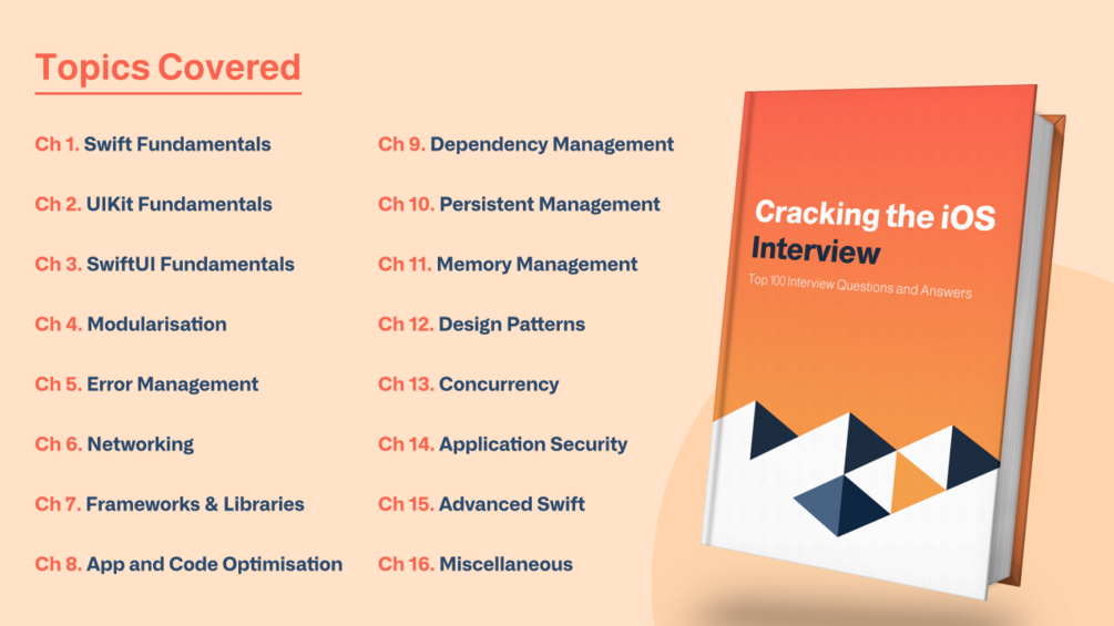 - Extensive Question Bank: This eBook features a meticulously curated collection of 100 iOS interview questions. Covering a broad range of topics, these questions have been handpicked to encompass the essential aspects of iOS development. By thoroughly preparing with this comprehensive question bank, you'll be fully equipped to tackle any interview scenario.